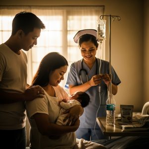 Dumating ang araw—mas maaga sa inaasahan. Bandang alas-tres ng madaling-araw, pumutok ang panubigan. Kumilos si Luis na parang sundalo sa laban: bag, kumot, birth plan, ambulance number na nakadikit sa ref. Sa hospital delivery room, binulong ni Nurse Tessa: “Kaya mo ‘to, Ana. Narito kami.”