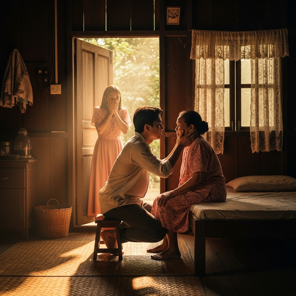 Una, nakita niya si Miguel — walang suot pang-itaas — nakaupo sa gilid ng kama ng ina.